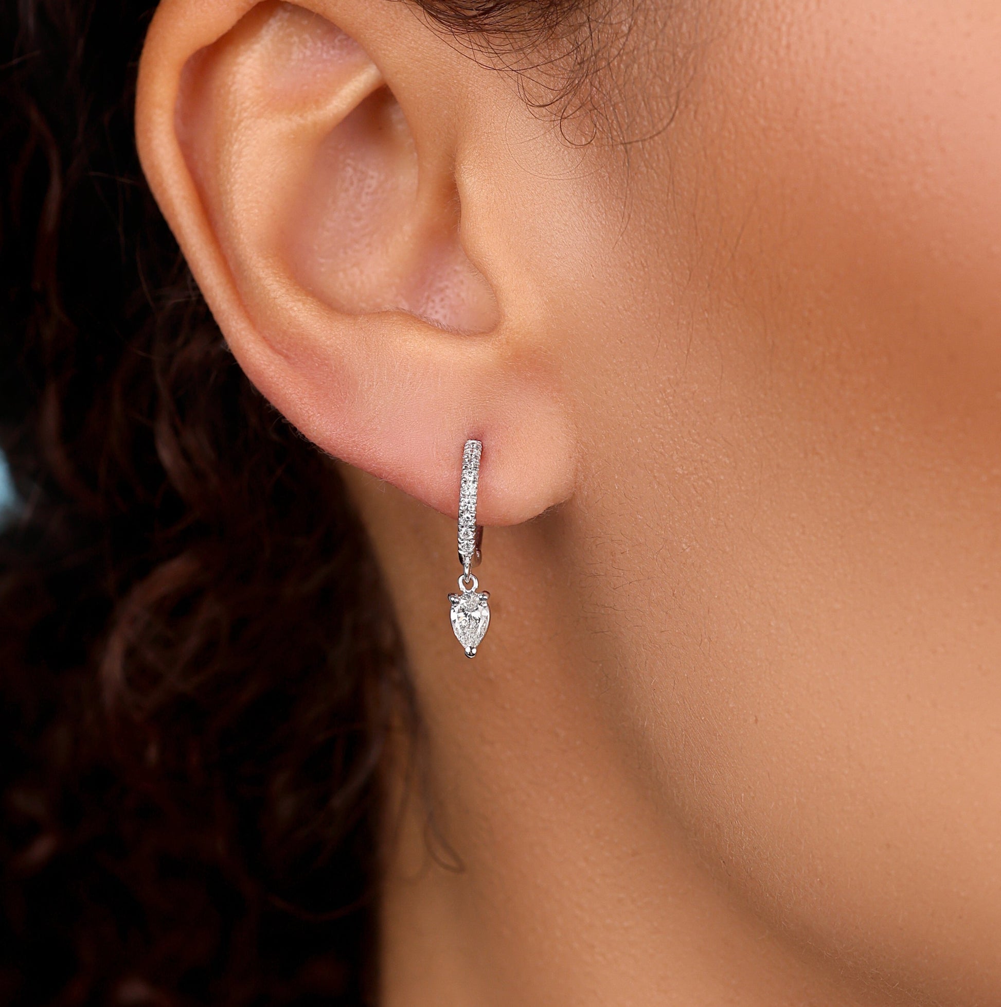 - Featuring a natural G-H color, SI clarity 0.25ct pear diamonds, and 0.005ct round diamonds = 0.59ctw