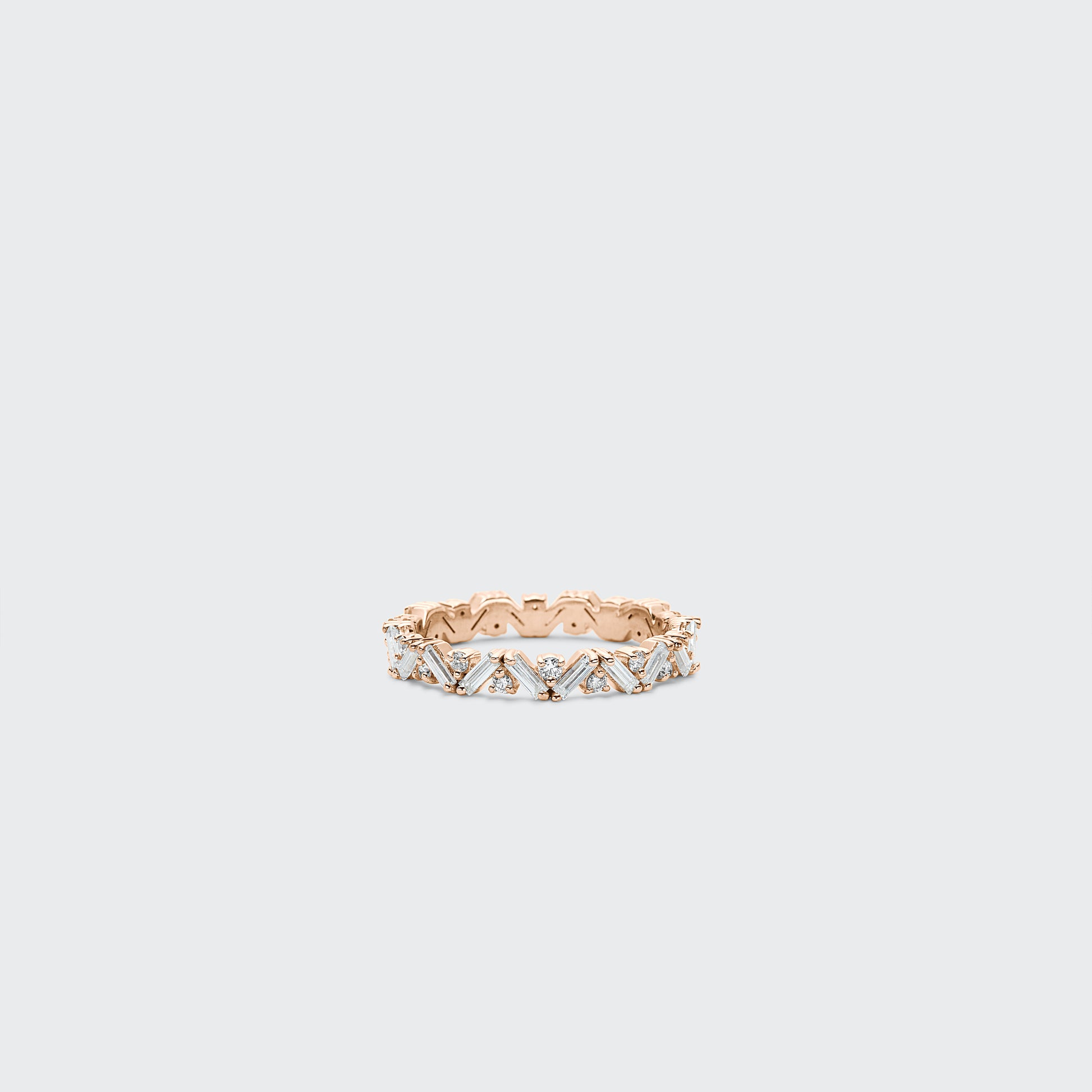 - Featuring natural G-H color, VS clarity and SI clarity diamonds, 0.01ct rounds, 0.03ct baguettes
